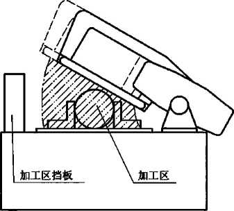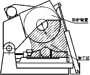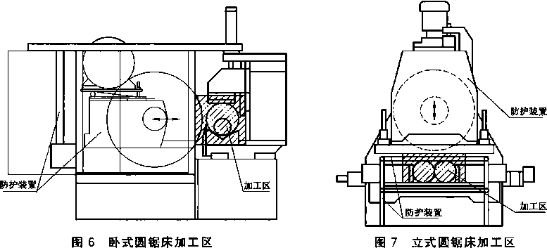 摆式圆锯床加工区 machining area of swing circular sawing machine