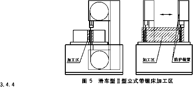 6.1.2卧式带锯床和立式带锯床工作时,加工区防护装置应能调整至与工件保持最小安全距离,即尽 可能靠近工件。