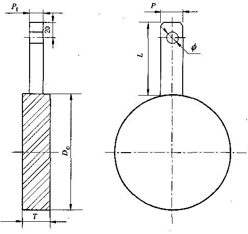 4. 3.1法兰间的盲板如图4所示,盲板的计算厚度应按式(1)计算,盲板的设计厚度应按式(2)计 算: