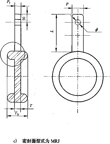 a)密封面为FF或RF的盲板 b)密封面为MRJ的盲板 c)密封面为FRJ的盲板