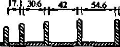 针片状规准仪的尺寸,由于试验篇孔径的改变而改变了.根 据定义,K度大于2. 5倍的平均粒度为针状.厚度小于0∙4倍平 均粒度为片状,规淮仪的尺寸作了相应的调控,具体数值见 表5、表6.