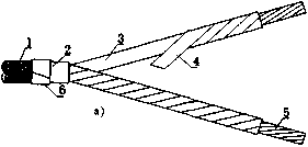a)将橡皮护套端部削成锥形;