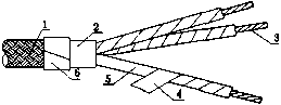 I-电缆金属编织套;2-绝缘护套:3-芯线;