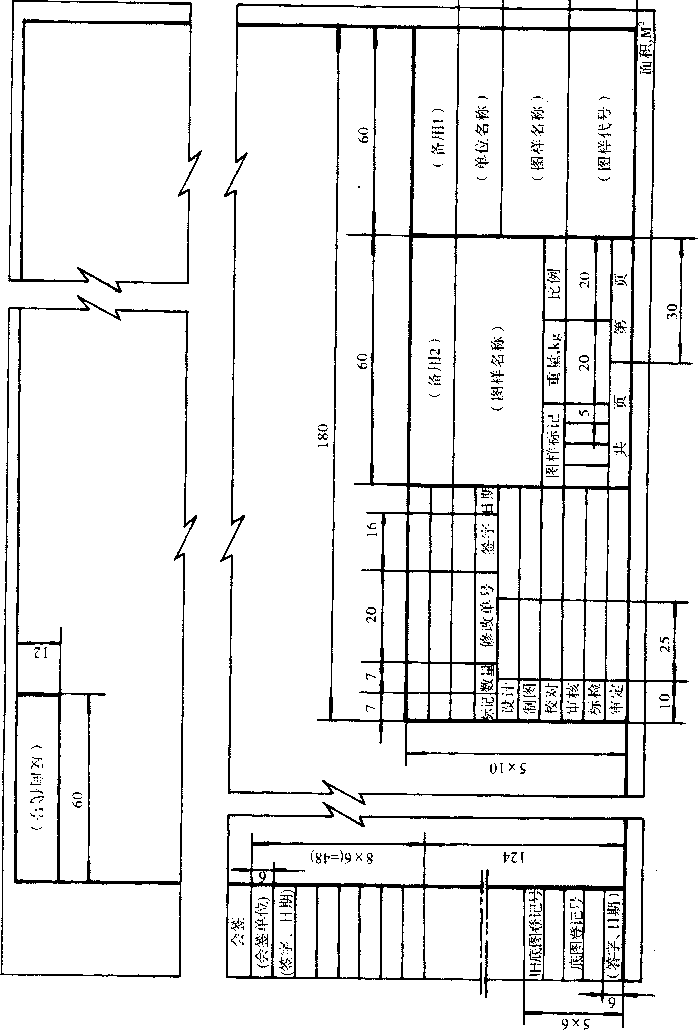 4.2.1每张舰船CAD图的右下角必须设有标题栏。标题栏在CAD图中的方位,除标题栏的格式和尺 寸之外应符合GB/T 14689-1993第5章的规定。