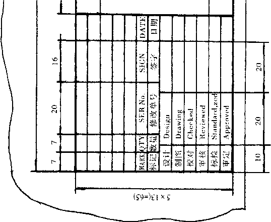 4. 2. 2舰船CAD图中标题栏一般由名称及代号区、标记区、更改区、签字区等组成。标题栏的格式 见附录A,格式中的内容可根据需要适当调整。