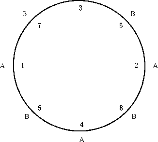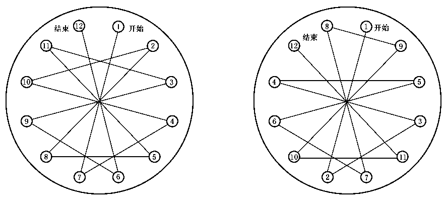 B.3.2图B.2所示为50%〜50%紧固方法,其中载荷A大于载荷犅。加载分三次进行: a)第1次加载,拉伸拧紧50%的螺栓(如1、2、3、4)至规定载荷A;