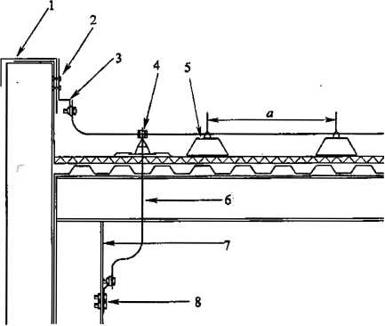 本条第6款的目的是防止相邻导体之间闪络,这种闪络会破, 坏引下线、接闪器,并对人身造成伤害,见本规范图D. 0. 2-1和图 D. 0.2-2所示。具体计算方法见现行国家标准《雷电防护 第3 部分:建筑物的物理损坏和生命危险》GB/T 21714. 3-2008中第 6. 3节的规定。