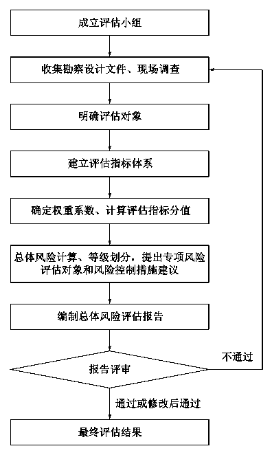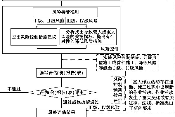 以作业活动或施工区段为评估对象,根据其施工技术复杂程度、施工工艺成熟度、施工组织便利性、 施工环境条件匹配性以及类似工程事故案例等,进行风险辨识与风险分析、风险估测,确定风险等级,提 出相应的风险控制措施建议。