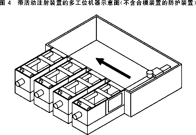 f)更改r带活动注射装置的多工位机器示意图[见图4和图5.2008年版的图4a)和图4b)];