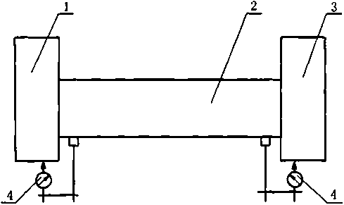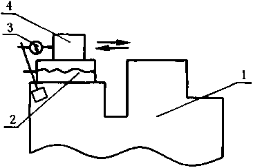 6. 3.5对5. 4. 5的检验:将两个百分表架固定在两端立柱上,百分表测头触及磨头座梁体,水平移动磨 头座梁体检测水平移动同步偏差(见图6),两个百分表读数的差值即为磨头座梁体水平移动同步偏差。