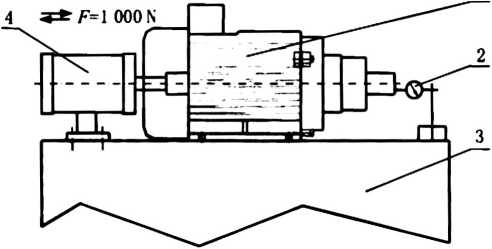 6. 3.7对5. 4. 7的检验:在专用设备检测平台上固定磨头电机和百分表,百分表指针触及磨头轴端面 (见图7),对磨头轴施加IOoON的推力,检测磨头轴向窜动量:将百分表指针触及磨头轴圆周表面(见 图8).转动磨头主轴,检测磨头轴径向跳动量。