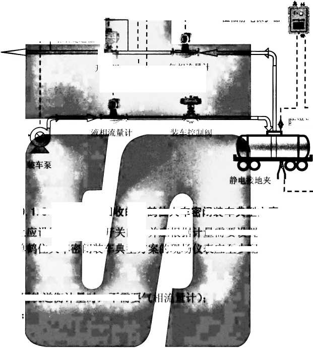 9.2. 1.1汽车装车鹤位配备鹤管及移动连接部件、防拉断阀、快速接头、弹簧缸机构、与罐车灌装口 的连接部件等,配备现场仪表和控制设备如流量计、装车控制阀、开关阀、变送器、溢油及静电保护