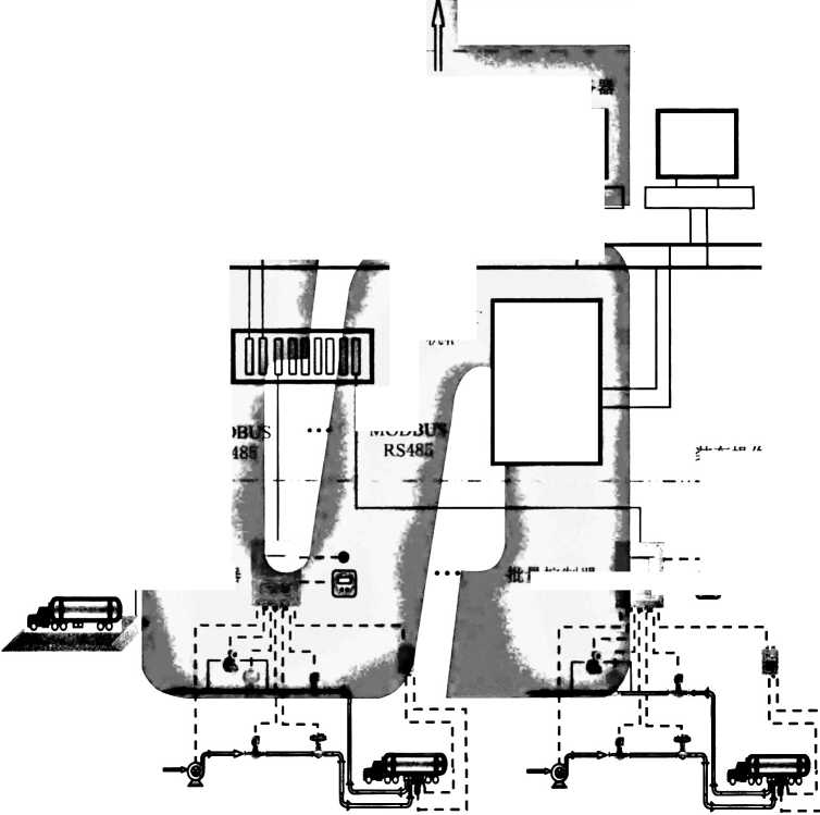 9. 4. 6流量连续控制方式的流量控制回路是随动控制,类似串级控制的副回路。流量给定值是批量控 制器的内部给定,是由装车的流量控制程序设定的。流量控制过程是:装车初始阶段缓慢增加流量, 到一定的值,保持低流速装车;当液体浸没鹤管口后,平稳将流量增加到最大值,持续大流量装车; 到装车结束阶段,关小装车控制阀,平稳减小流量,进行小流量装车,达到预定装车量时关阀,实现 精确定量装车。