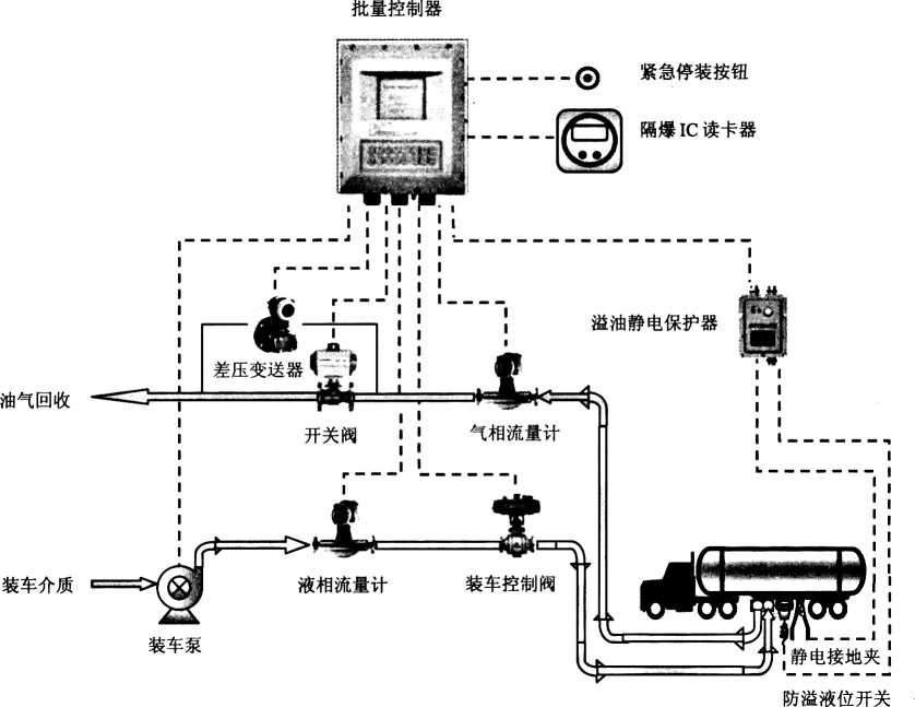 关和静电接地检测由罐车鮮,当标准插墓与 制器。另一种是采用鹤位g备的防溢液