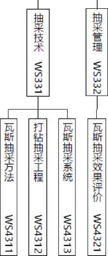 瓦斯抽采标准分为抽采技术、抽采管理2个类别,如图4所 示。其中,抽采技术类别分为瓦斯抽采方法、打钻抽采工程、瓦 斯抽采系统等;抽采管理类别分为瓦斯抽采效果评价等。