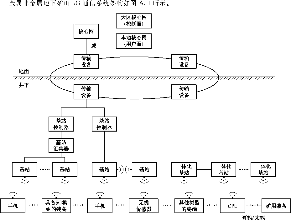 图A. 1金属非金属地下矿山5G通信系统架构示意图